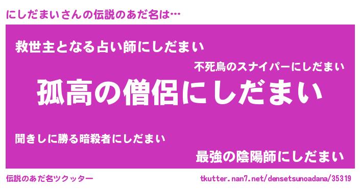 | 意味不明あだ名 | 『とにかく怪しいにしだまい』 |
