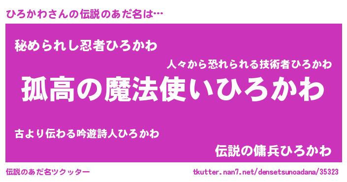 | 意味不明あだ名 | 『とにかく怪しいひろかわ』 |