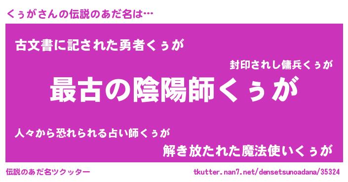 | ヒーロー風カッコイイあだ名 | 『ウルトラ戦士クゥガ』『ネオクゥガ』 |