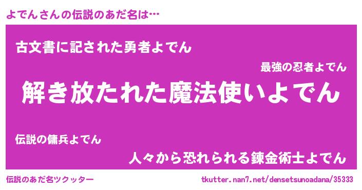 | 女子向けラノベタイトル風あだ名 | 『よでんの卵を拾いまして』『闇のよでん』 |