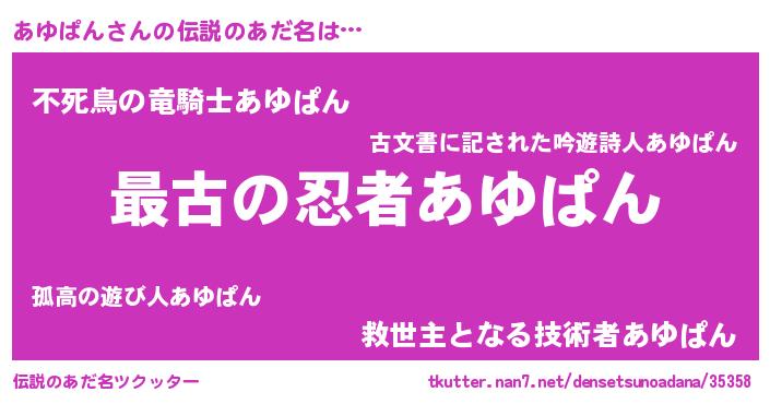 | ファンタジー風あだ名 | 『エターナルアユパンー』『アユフェル』 |