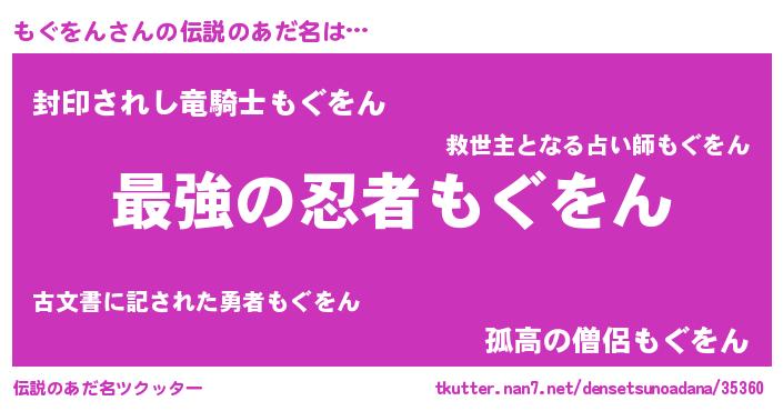 | 男性向けラノベタイトル風あだ名 | 『この素晴らしい世界にもぐをんを!』 |