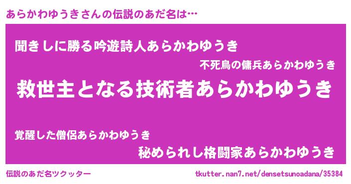 | 肩書あだ名 | 『あらかわゆうき閣下』 |