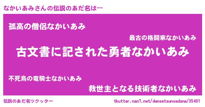 | ヒーロー風カッコイイあだ名 | 『究極戦士ナカイアミ』『ネオナカイアミ』 |