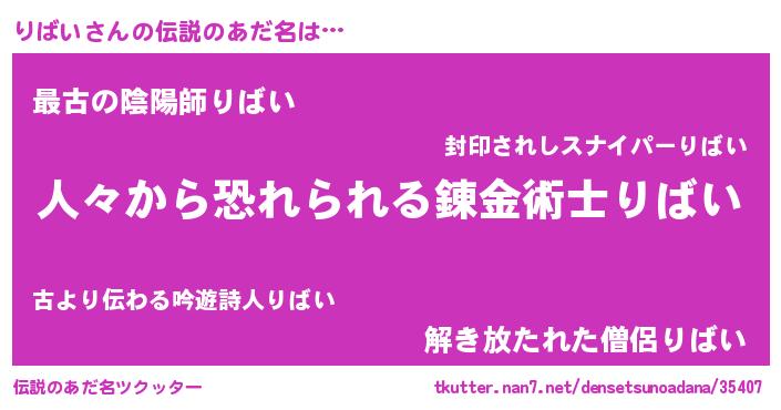 | ヒーロー風カッコイイあだ名 | 『正義の使者りばい』『天弓騎士リバ』 |