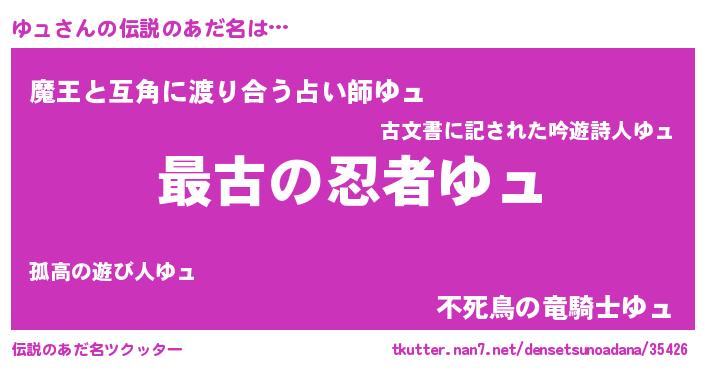 | ヒーロー風カッコイイあだ名 | 『ウルトラゆュマン』『友情の使者ゆュ』 |
