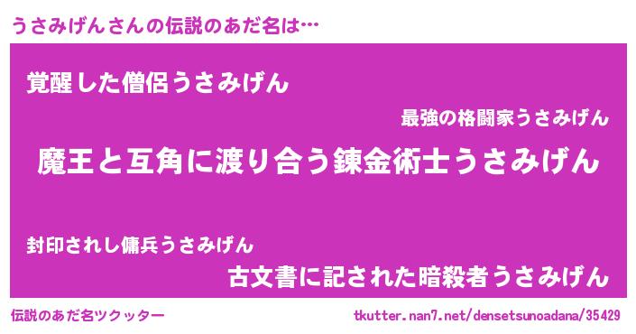 | ヒーロー風カッコイイあだ名 | 『愛の使者うさみげん』『炎刃騎士ウサ』 |