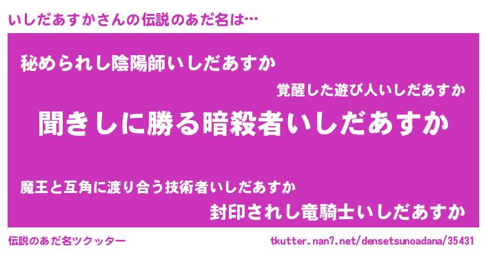 | 男性向けラノベタイトル風あだ名 | 『いしだあすかという概念が存在しない退屈な世界 』 |