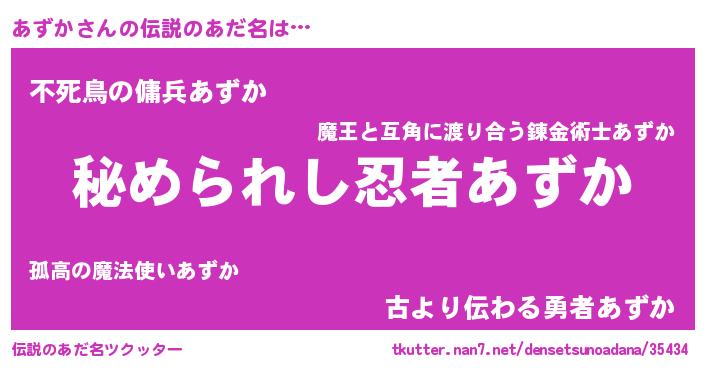 | ファンタジー風あだ名 | 『エターナルアズカー』『アズフェル』 |