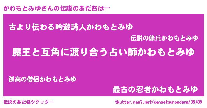 | ヒーロー風カッコイイあだ名 | 『愛の使者かわもとみゆ』『黄金騎士カワ』 |
