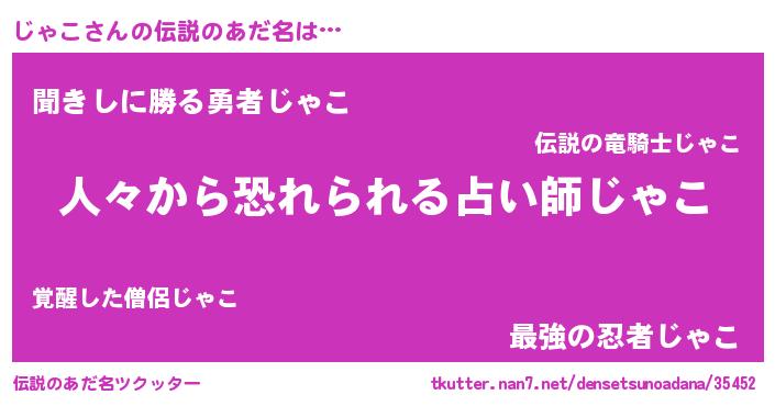 | ヒーロー風カッコイイあだ名 | 『友情の使者じゃこ』『ネオジャコ』 |