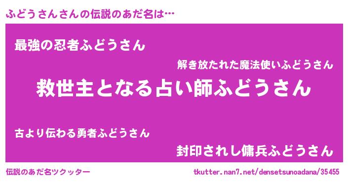 | 女子向けラノベタイトル風あだ名 | 『死神ふどうさんの再婚』 |