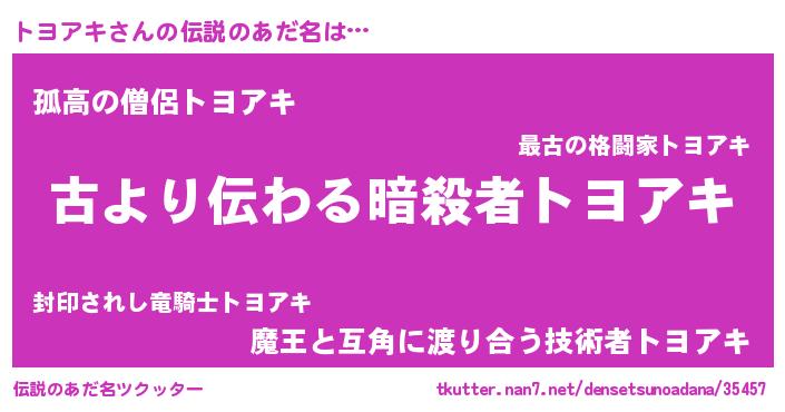 | 意味不明あだ名 | 『永久保存トヨアキ』『自称トヨアキ』 |