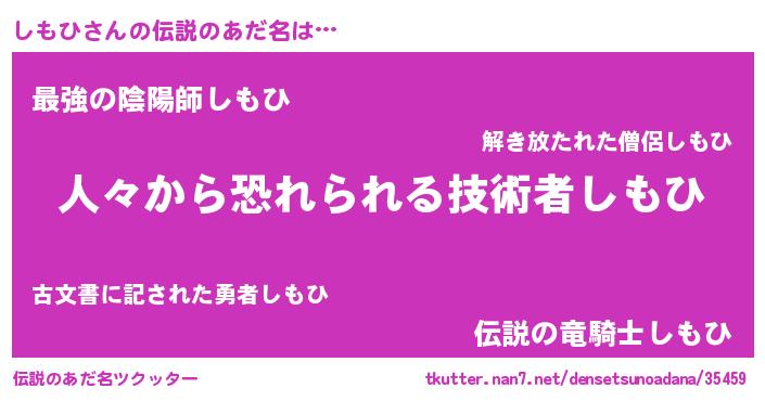 | 男性向けラノベタイトル風あだ名 | 『シモヒスレイヤー』『魔弾の王としもひ』 |