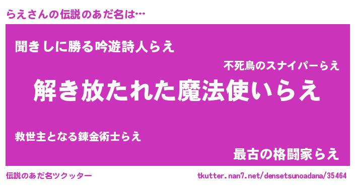 | 胡散臭い通販商品みたいなあだ名 | 『伝統あるサプリメント…その名も「らえ」』 |
