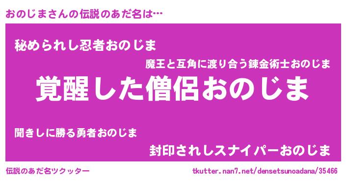 | 男性向けラノベタイトル風あだ名 | 『おのじまの嫁は女の子じゃないと思った?』 |