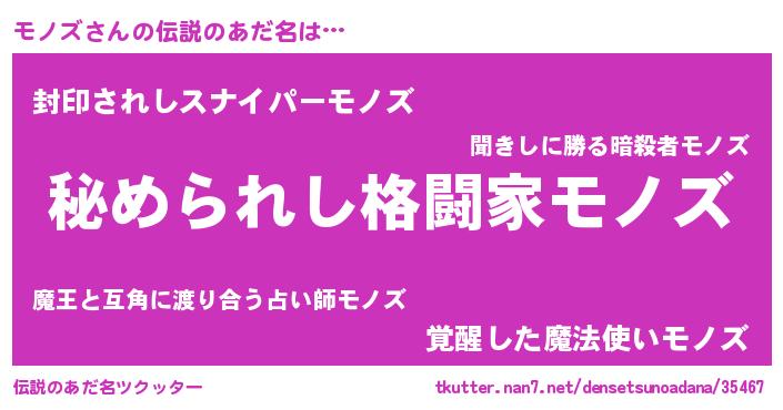 | 男性向けラノベタイトル風あだ名 | 『緋弾のモノズ』『モノズの憂鬱』 |