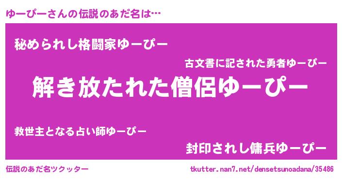 | 男性向けラノベタイトル風あだ名 | 『ダンジョンにゆーぴーを求めるのは間違っているだろうか』 |