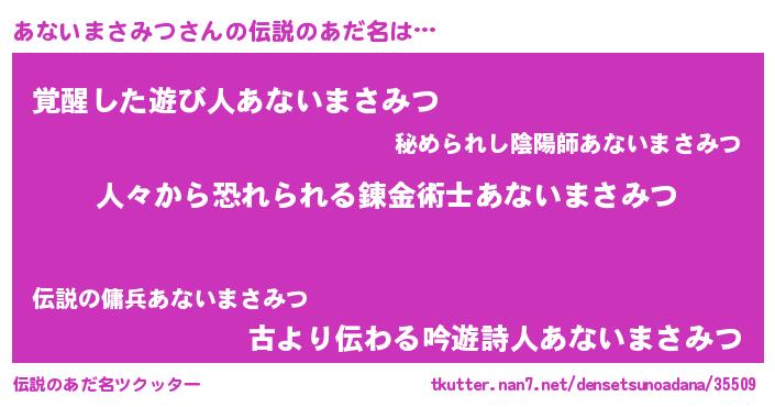 | ヘコむあだ名 | 『あなぷりん』『あないまさみつ(笑)』 |