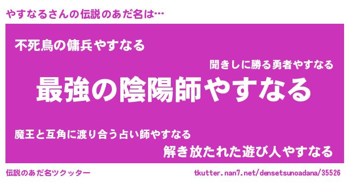 | ファンタジー風あだ名 | 『エターナルヤスナルー』『ゼヤストゥ』 |