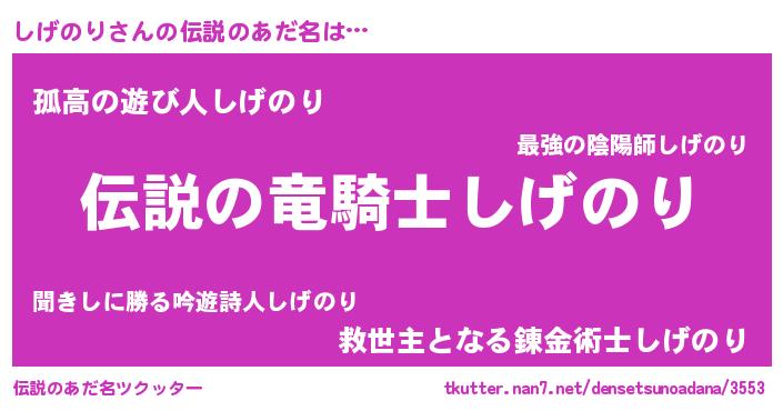 | 男性向けラノベタイトル風あだ名 | 『しげのりの憂鬱』 |