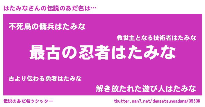 | ヒーロー風カッコイイあだ名 | 『サイバー戦士ハタミナ』『魔戒騎士ハタ』 |
