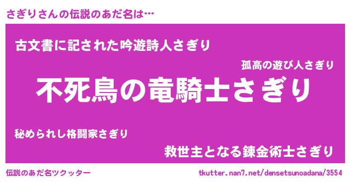 | ヘコむあだ名 | 『さぎにー』『さぎり(震え声)』 |