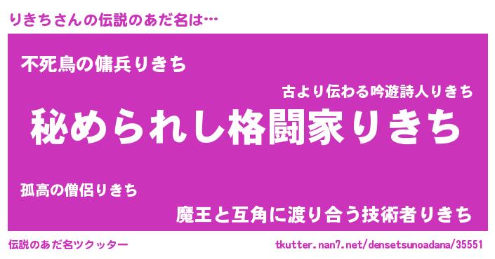 | 意味不明あだ名 | 『住所不定無職りきち(10歳)』『自称りきち』 |