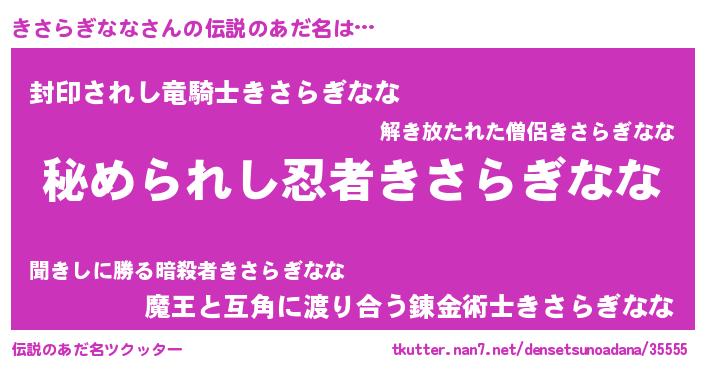 | 意味不明あだ名 | 『自称きさらぎなな』 |