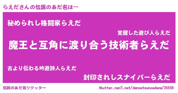 | ヒーロー風カッコイイあだ名 | 『慈愛の使者らえだ』『スーパーラエダ』 |