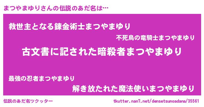 | 意味不明あだ名 | 『住所不定無職まつやまゆり(39歳)』 |