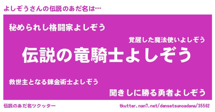 | 胡散臭い通販商品みたいなあだ名 | 『ガンによく効く高麗人参…その名も「よしぞう」』 |