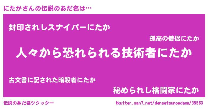 | 男性向けラノベタイトル風あだ名 | 『緋弾のニタカ』『ニタカスレイヤー』 |