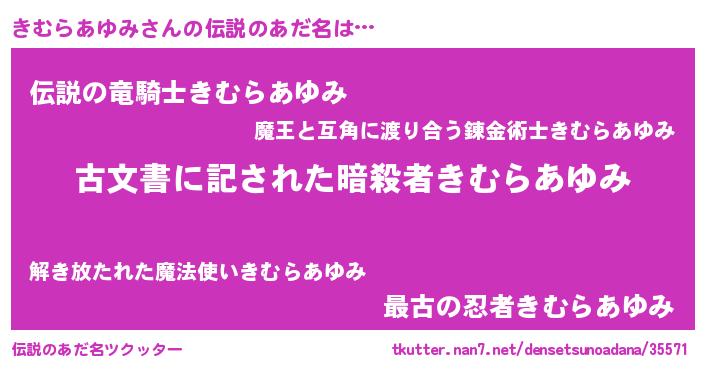 | ヘコむあだ名 | 『きむらあゆみ(笑)』『きむふぇ~』 |