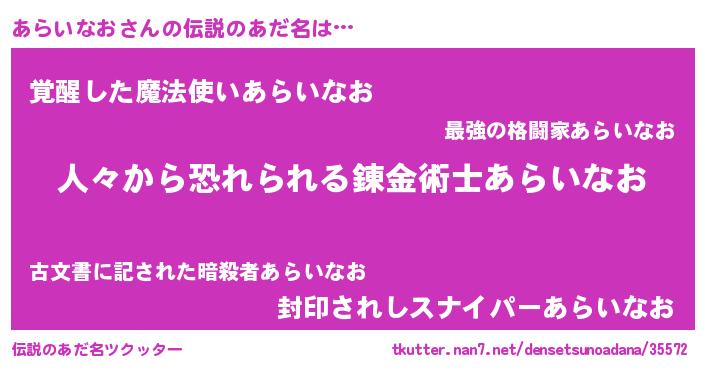 | ヒーロー風カッコイイあだ名 | 『友情の使者あらいなお』『幻影騎士アラ』 |
