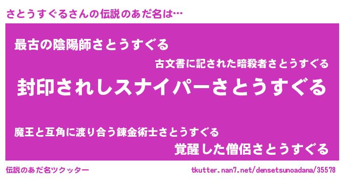 | 意味不明あだ名 | 『自称さとうすぐる』 |