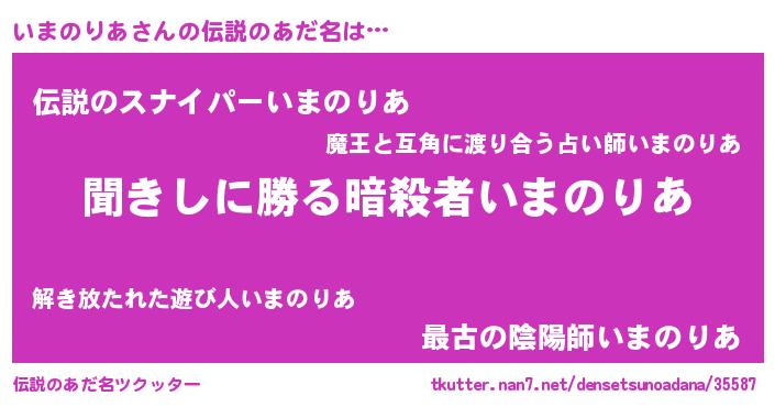 | 男性向けラノベタイトル風あだ名 | 『緋弾のイマノリア』 |