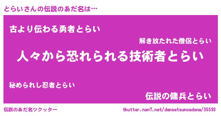 | ヒーロー風カッコイイあだ名 | 『仮面トラダー』『正義の使者とらい』 |