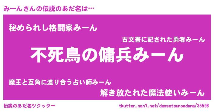 | ファンタジー風あだ名 | 『ミーフェル』『エターナルミーンー』 |