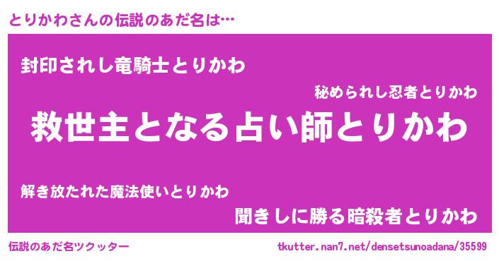 | 意味不明あだ名 | 『住所不定無職とりかわ(56歳)』 |
