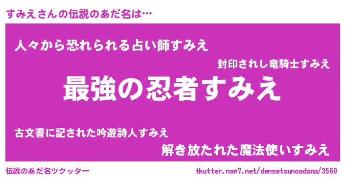 | 意味不明あだ名 | 『すみえフォーエバー』『自称すみえ』 |