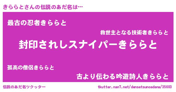 | ヒーロー風カッコイイあだ名 | 『究極戦士キララト』『スーパーキララト』 |