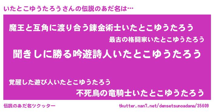 | 男性向けラノベタイトル風あだ名 | 『いたとこゆうたろうという概念が存在しない退屈な世界 』 |