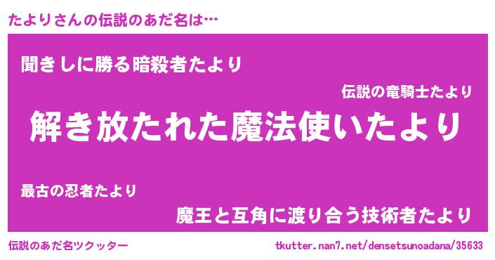 | 意味不明あだ名 | 『とにかく怪しいたより』『自称たより』 |