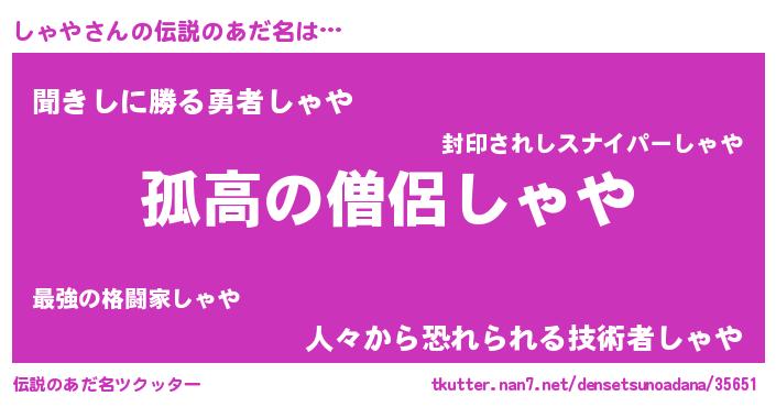 | 意味不明あだ名 | 『自称しゃや』『とにかく怪しいしゃや』 |