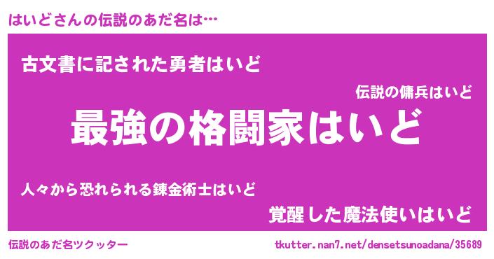 | ヒーロー風カッコイイあだ名 | 『ウルトラはいどマン』『ネオハイド』 |