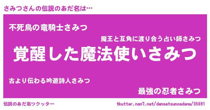 男性向けラノベタイトル風あだ名 | 『この素晴らしい世界にさみつを!』 |