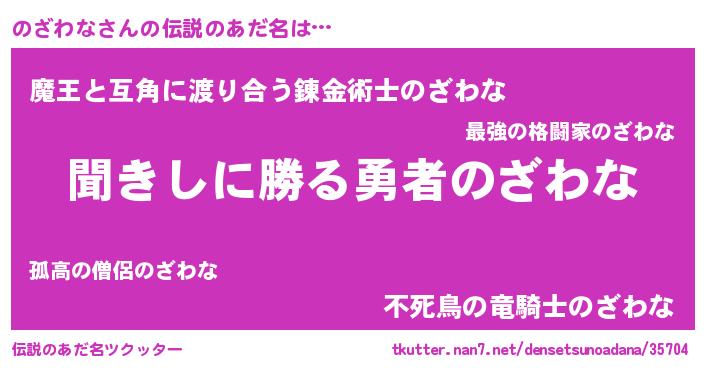 | ヘコむあだ名 | 『のざわな(遠い目)』『のざもー』 |