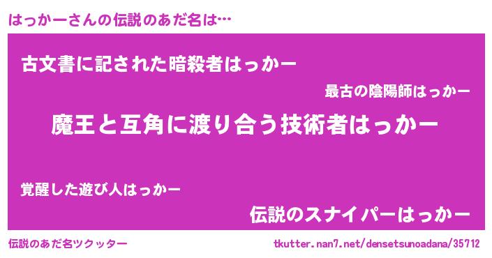 | ヒーロー風カッコイイあだ名 | 『愛の使者はっかー』『最強戦士ハッカー』 |