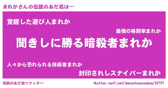 | 男性向けラノベタイトル風あだ名 | 『まれかという概念が存在しない退屈な世界 』 |